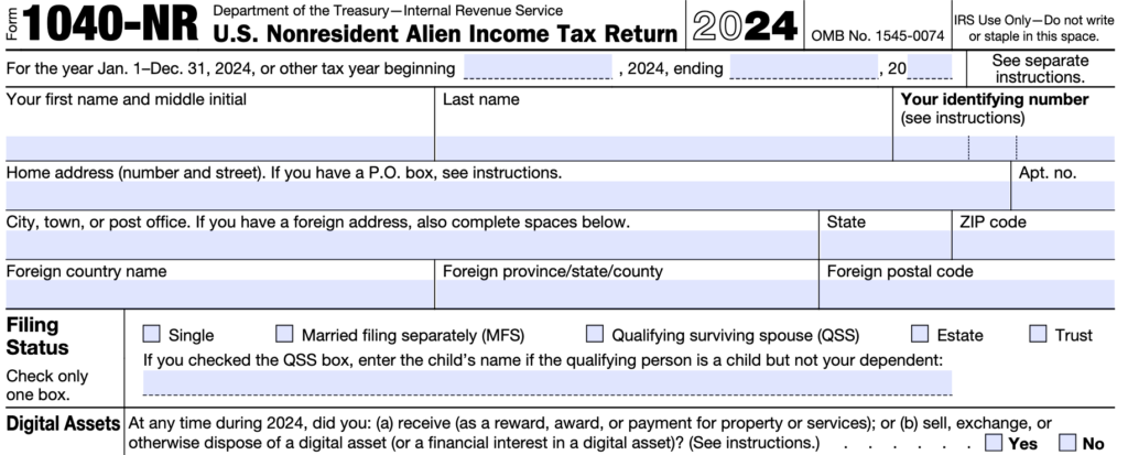 IRS Form 1040-NR – The US Nonresident Income Tax Return (2024 edition)