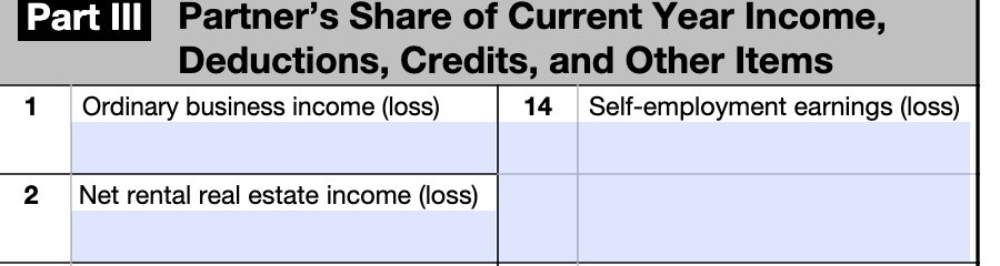Your K-1 breaks down various types of income allocated to you. The boxes and labels differ slightly depending on the form: